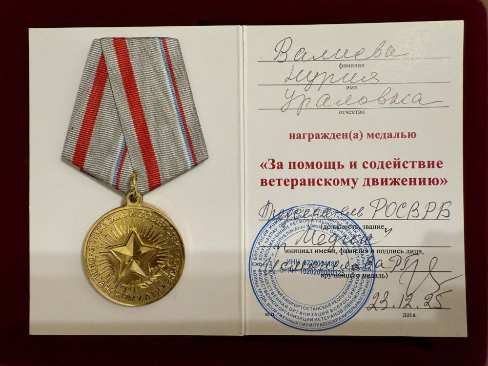 Среди приглашённых на пленум была заведующая организационно-методическим отделом Толбазинской больницы Валиева Нурия Ураловна, которой в торжественной обстановке вручена медаль «За помощь и содействие ветеранскому движению».